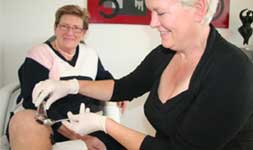 Margret Engels ist eine Patientin, die unter Arthrose im Kniegelenk leidet und die - wie sie sagt - die "Heilkraft der Blutegel" bereits erlebt hat. Alle paar Monate kommt sie in die Praxis und bittet Monika Czech, ihr Blutegel anzusetzen. Auf das geschwollene Knie. "In meinem Knie steckt so ein Druck", klagt die Seniorin. "Das platzt gleich. Deshalb freue ich mich schon auf meine kleinen Freunde."